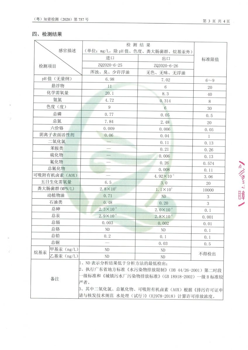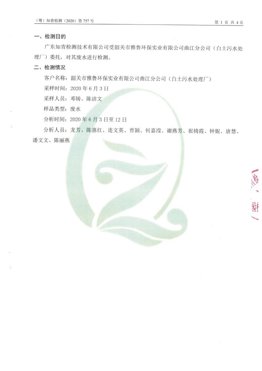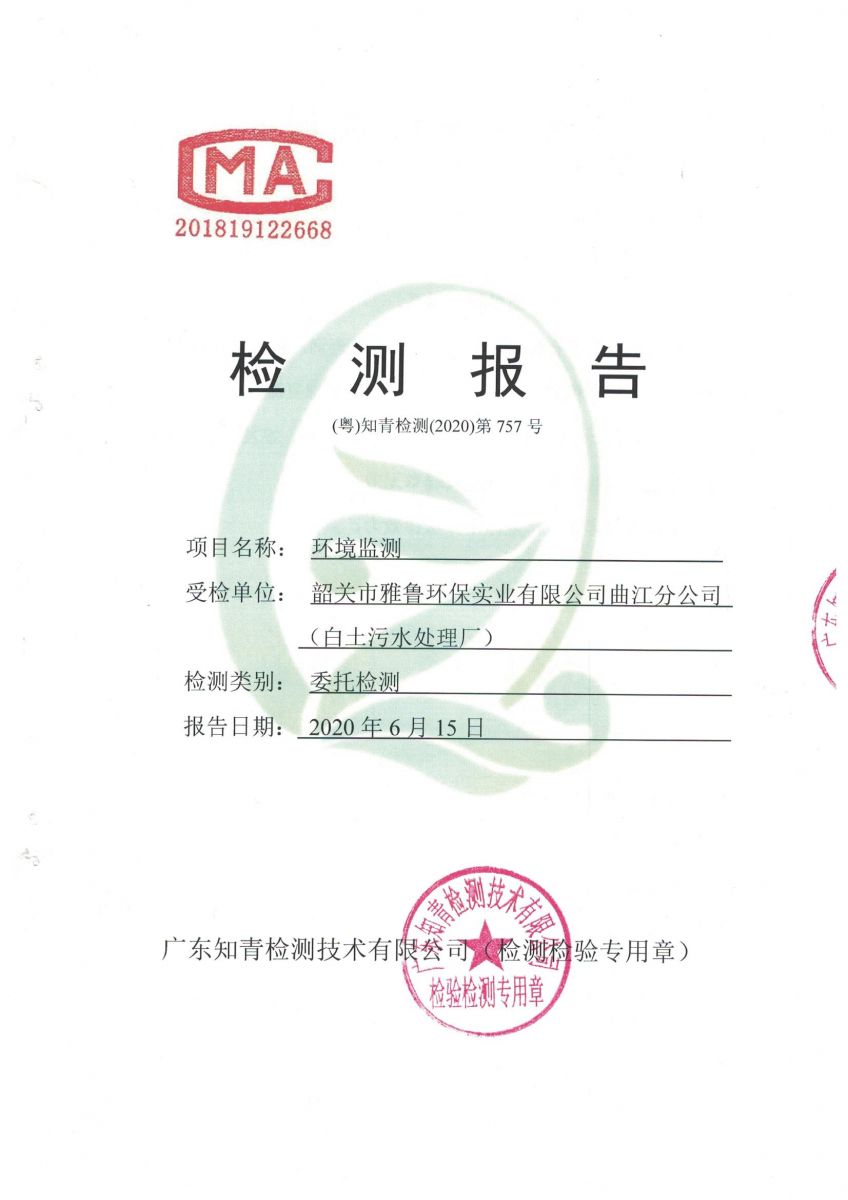 白土污水處理廠2020年6月第三方水質檢測報告