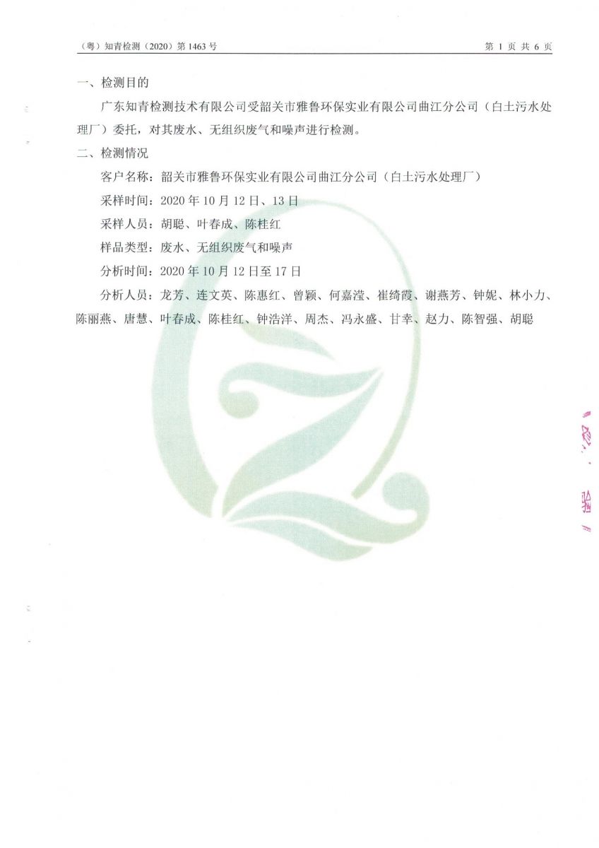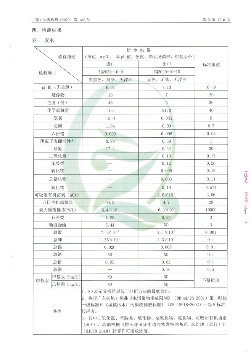 白土污水處理廠2020年9月第三方水質檢測報告