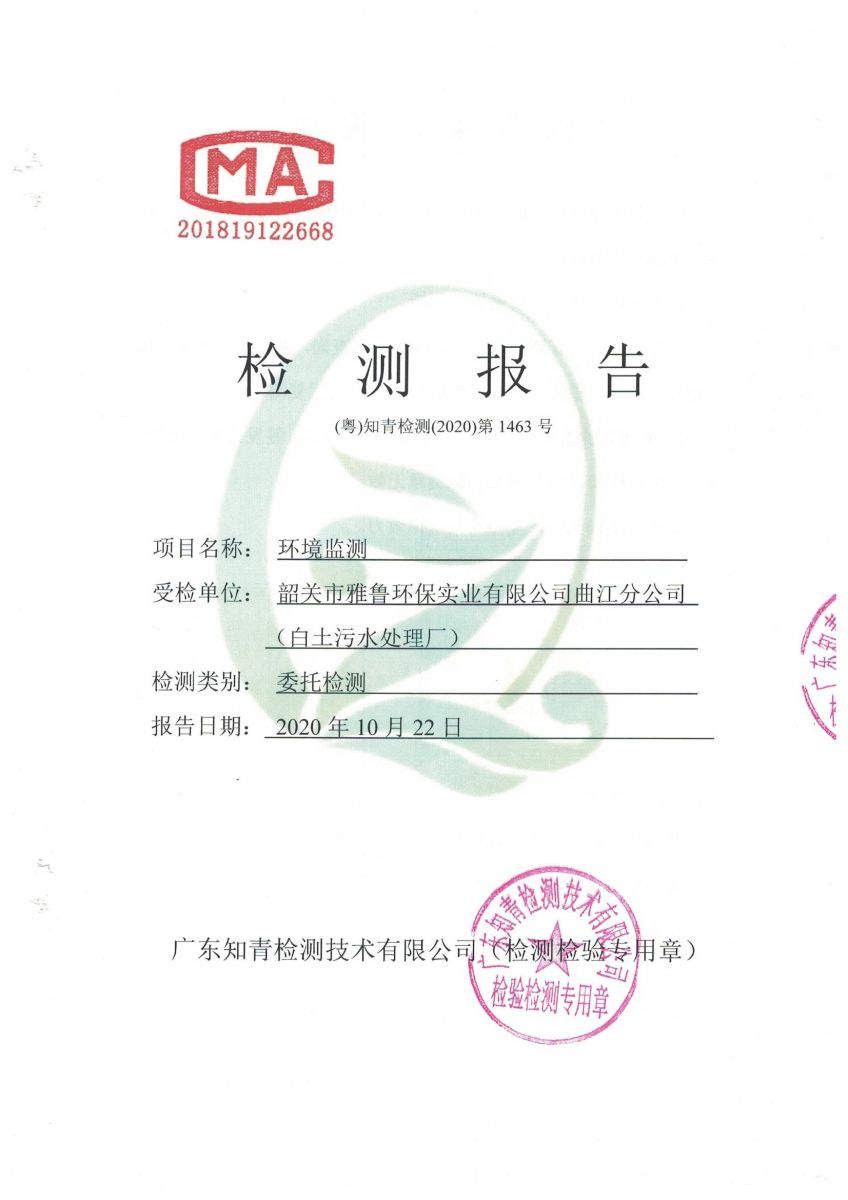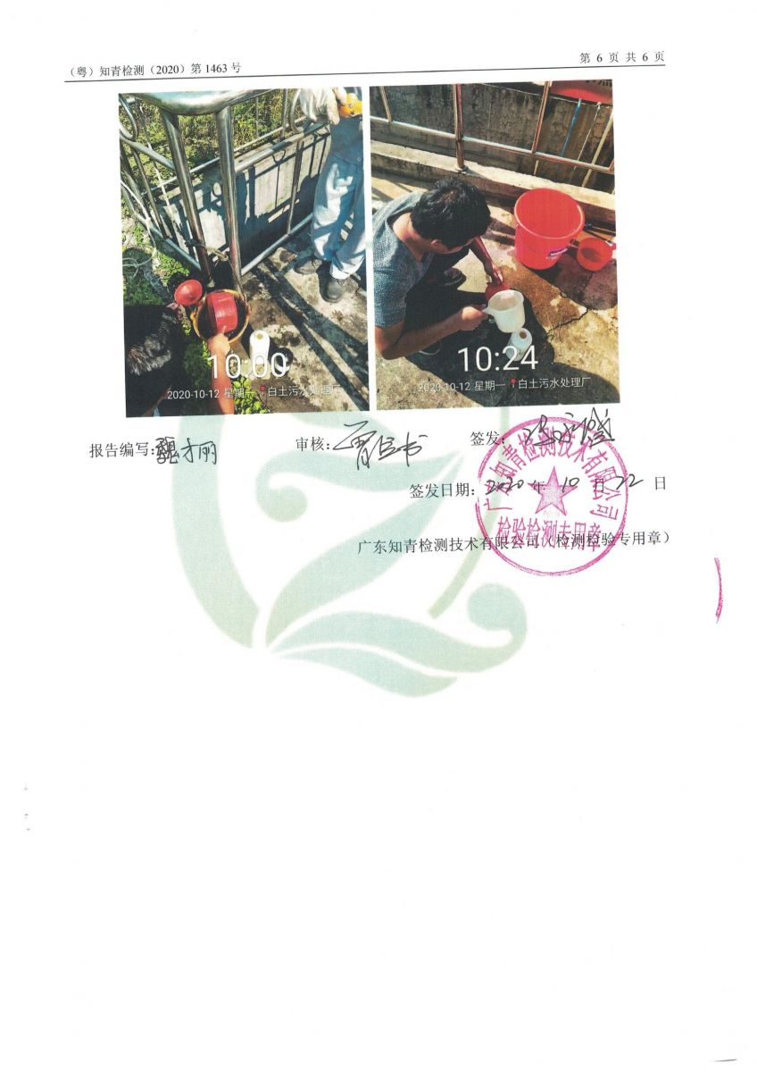 白土污水處理廠2020年10月第三方水質檢測報告
