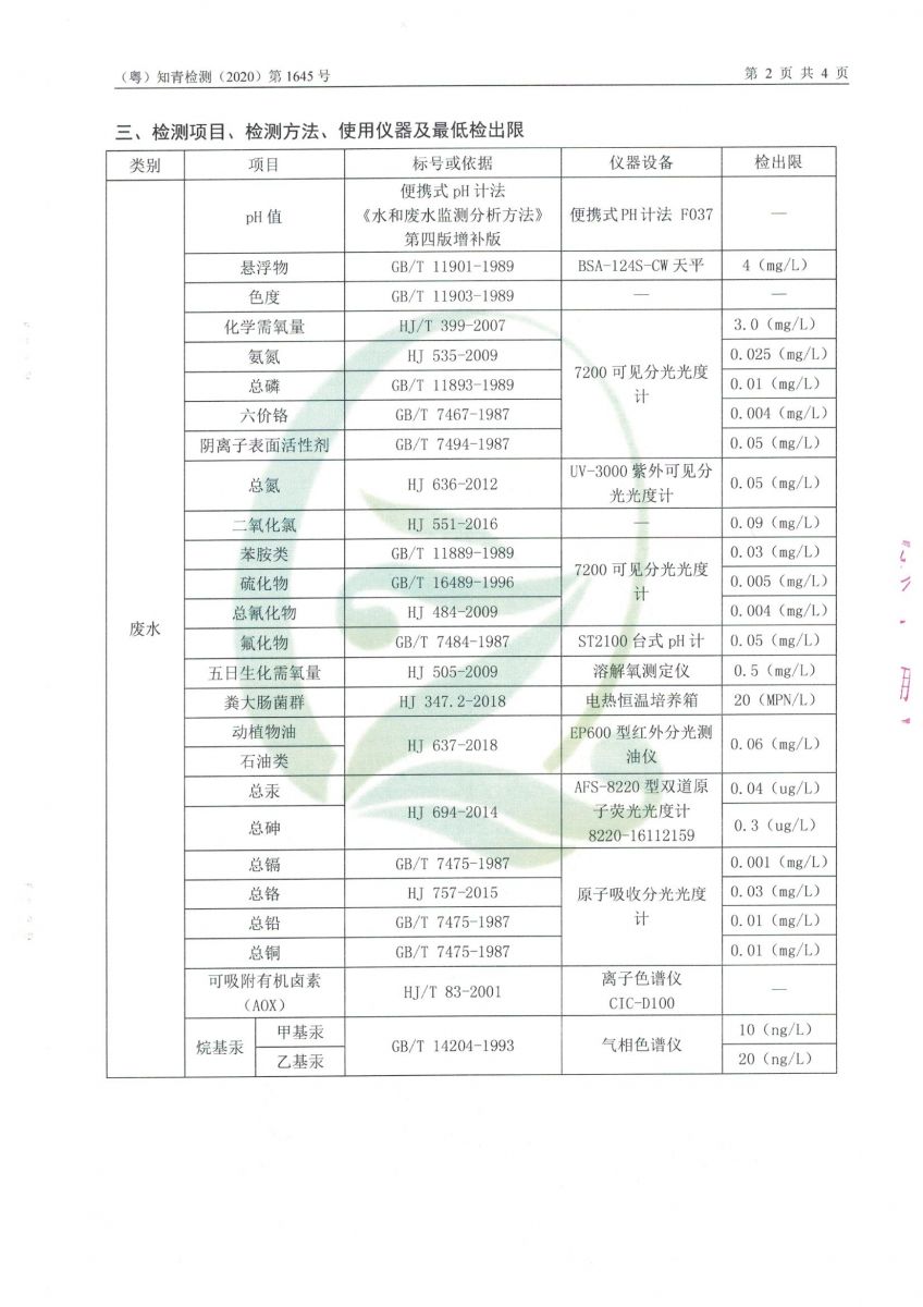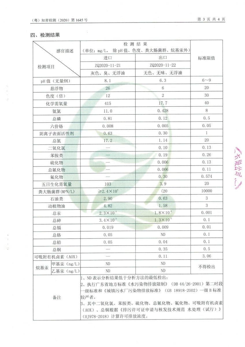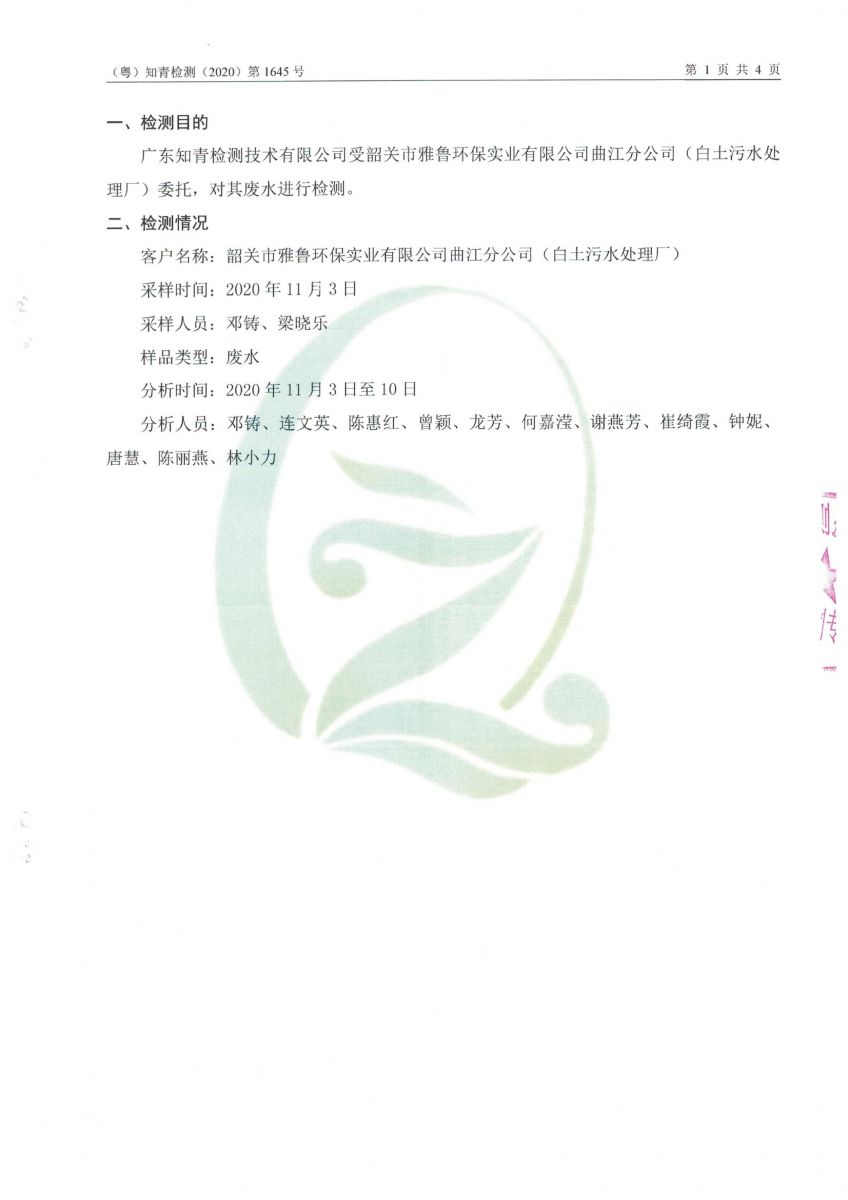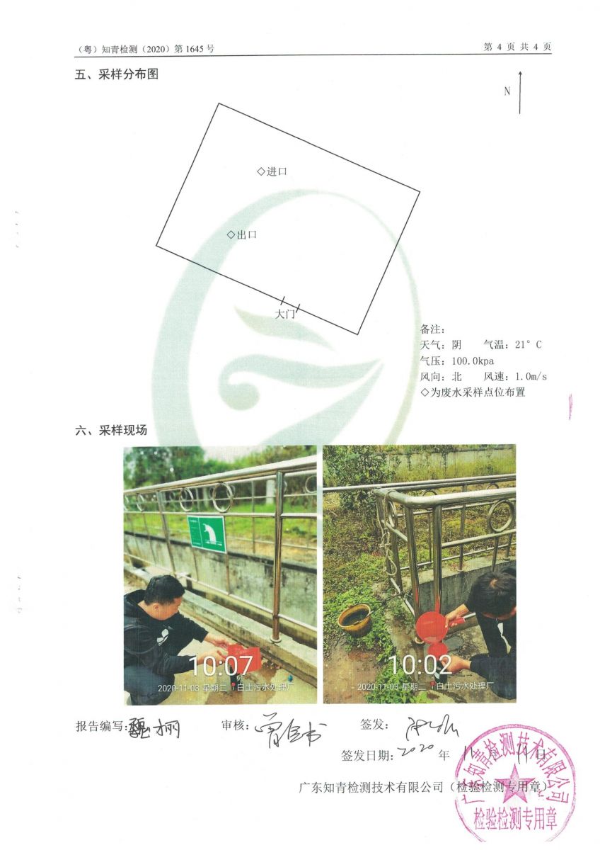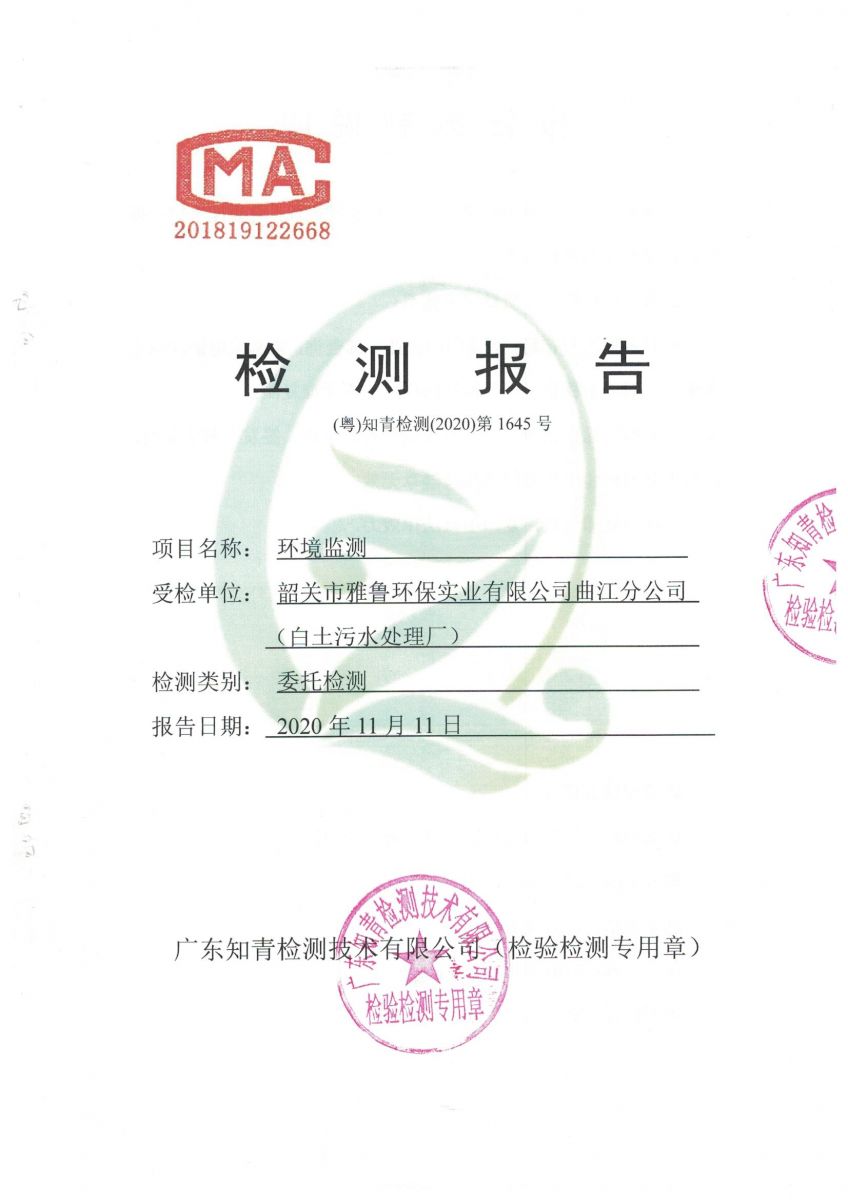 白土污水處理廠2020年11月第三方水質檢測報告