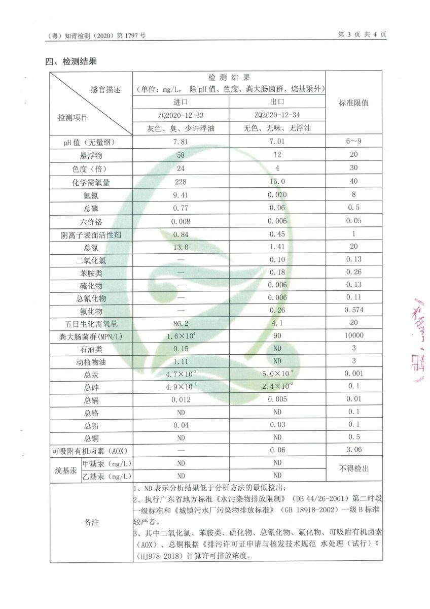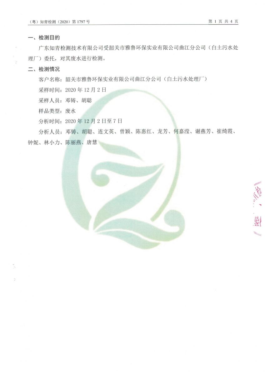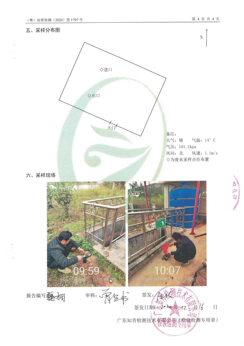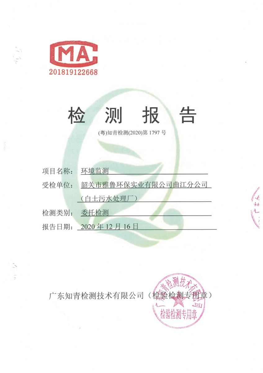 白土污水處理廠2020年12月第三方水質檢測報告