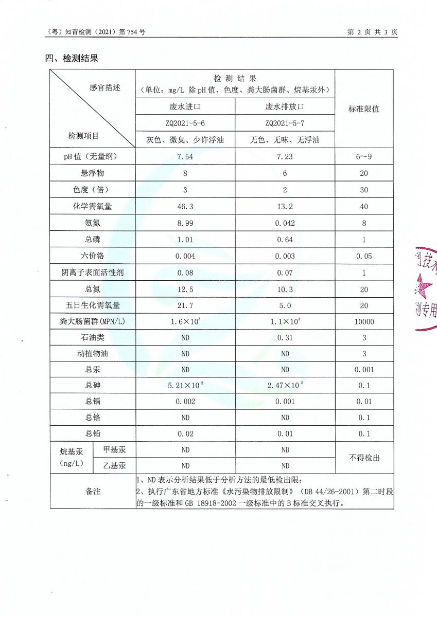 坪石污水處理廠2021年5月份檢測報告