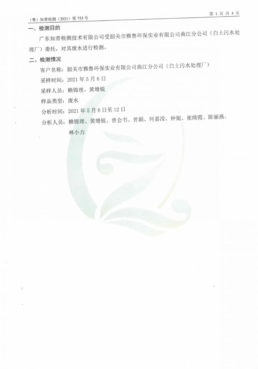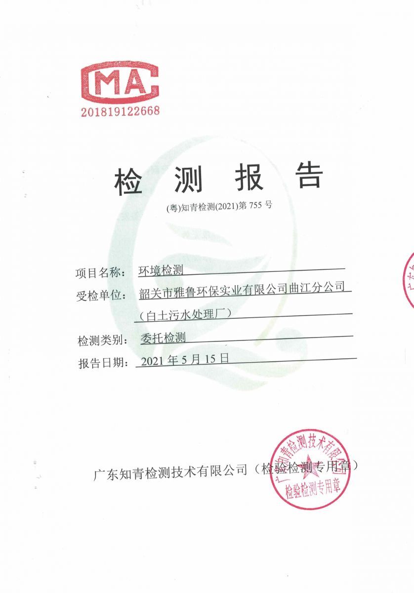 白土污水處理廠2021年5月份檢測報告
