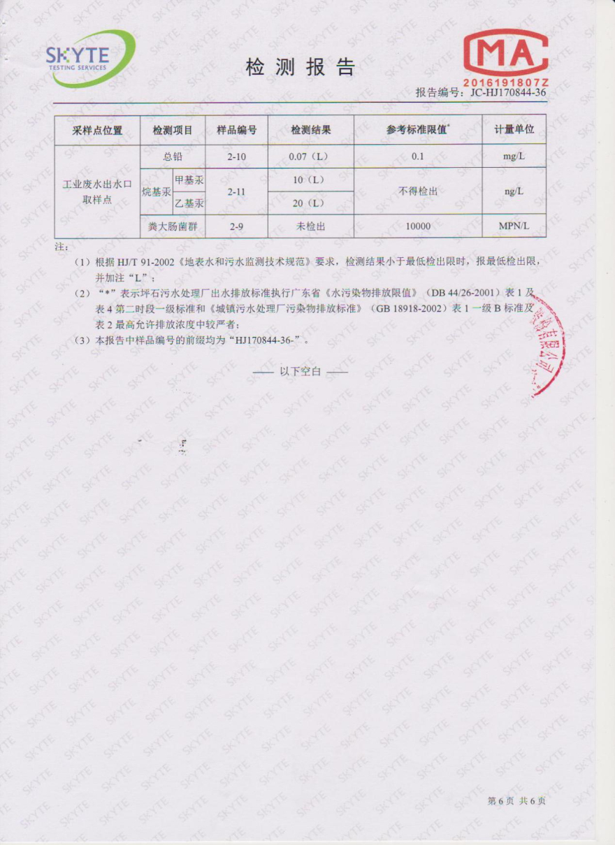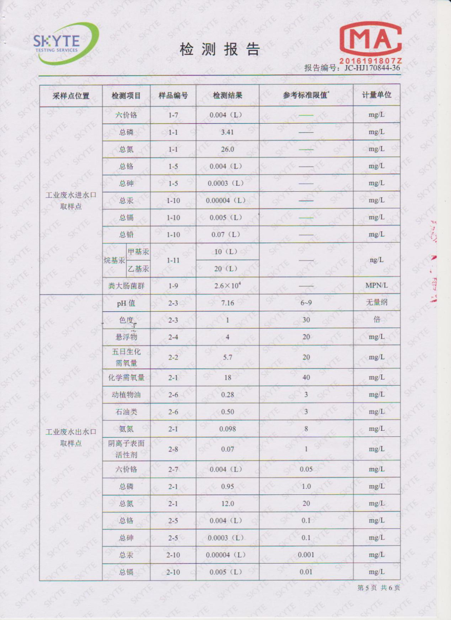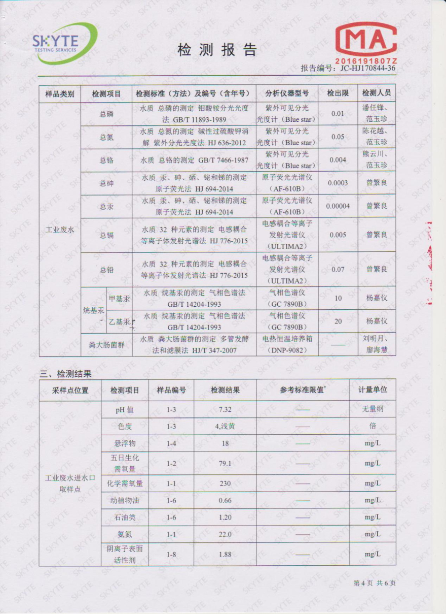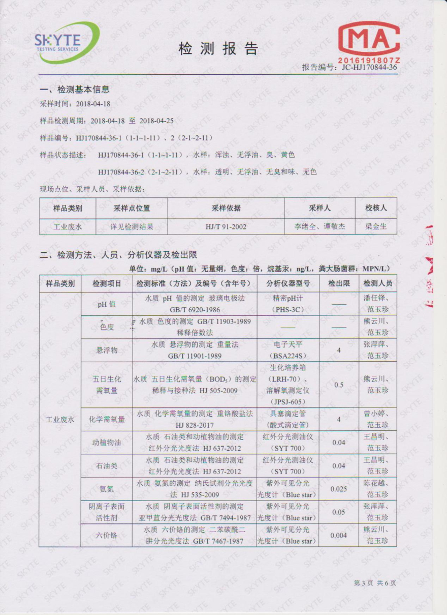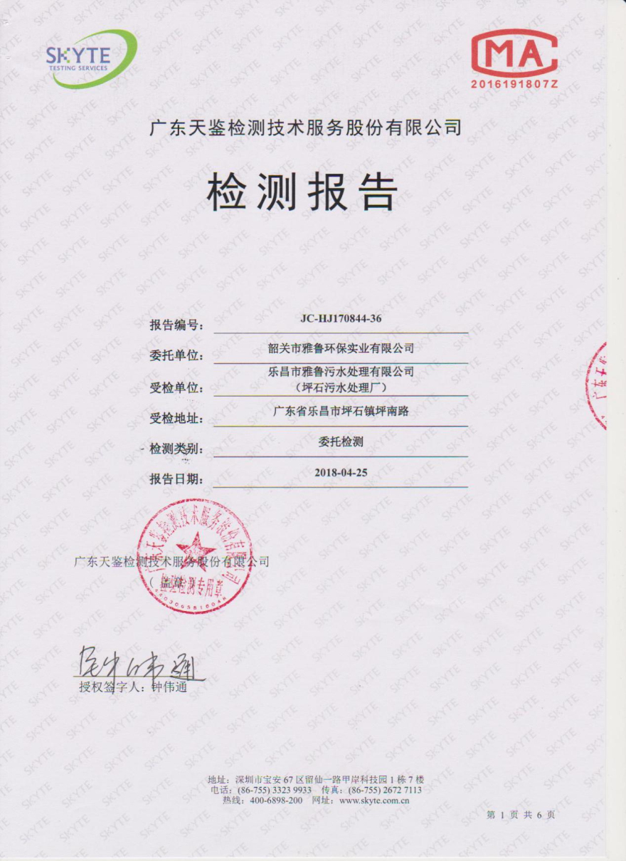 樂昌市雅魯污水處理有限公司第三方監測報告4月