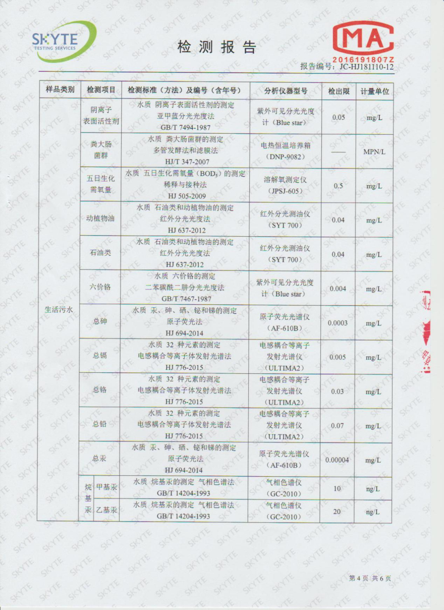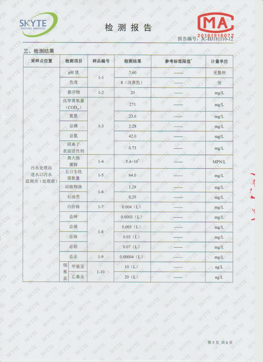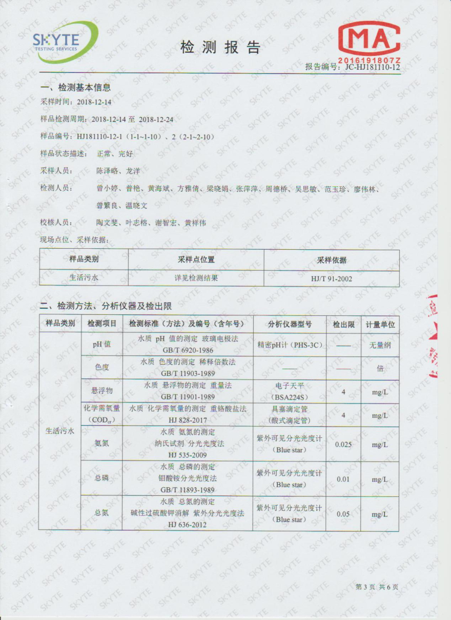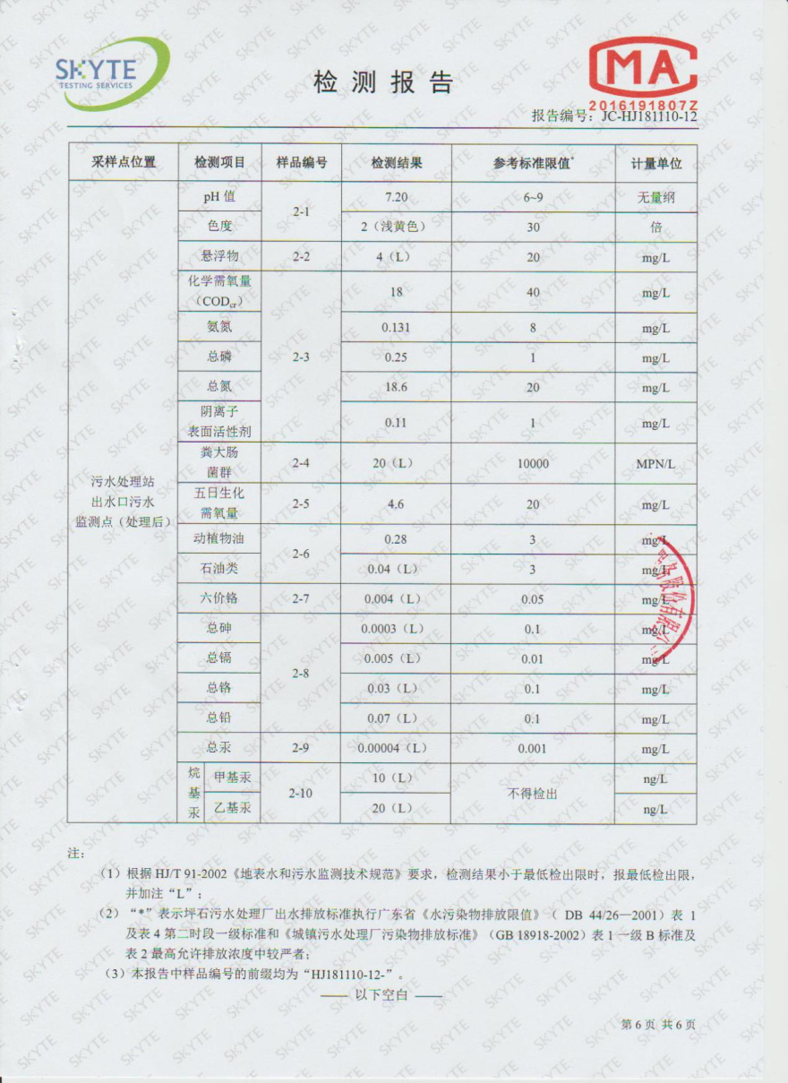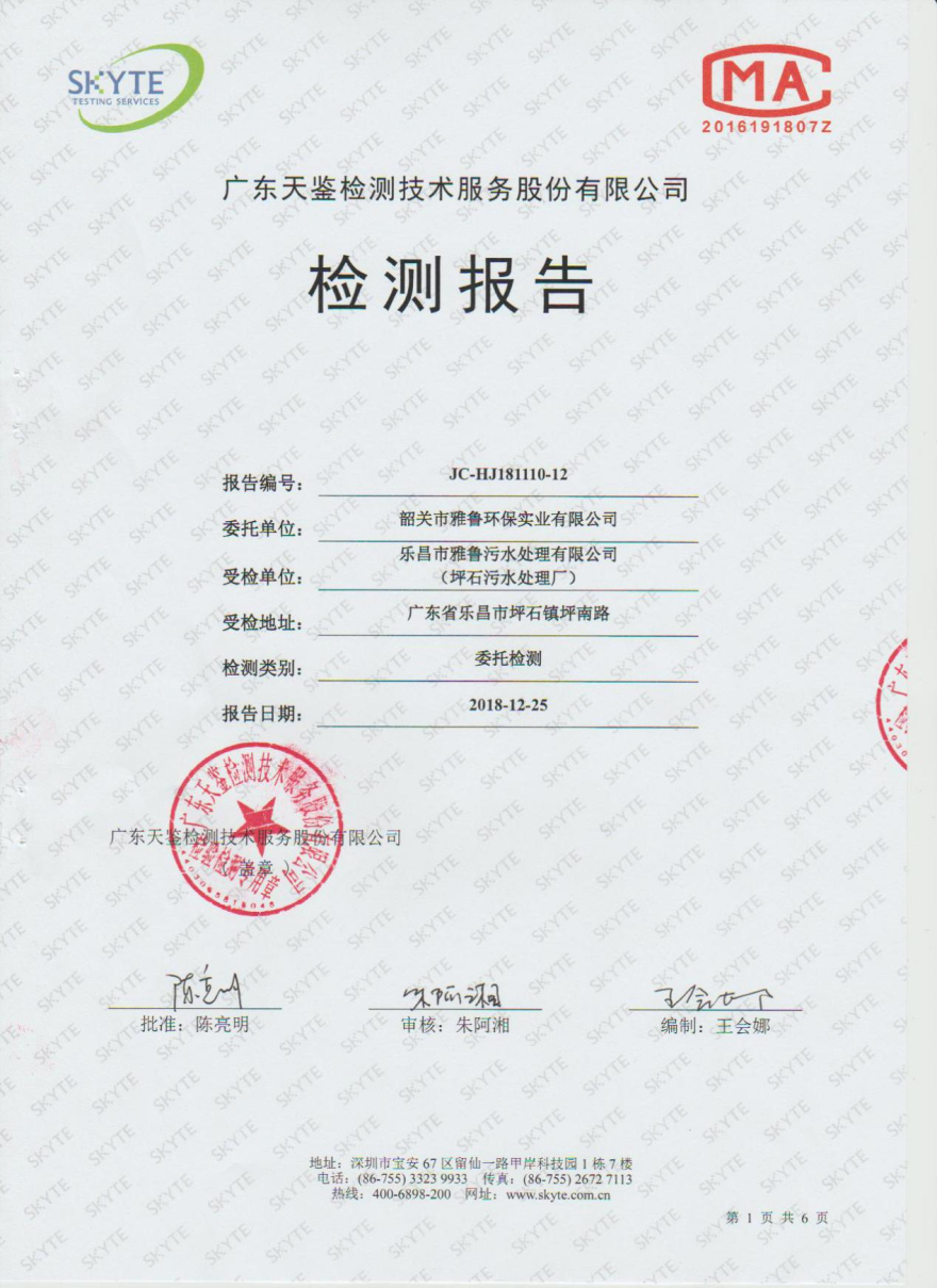 樂昌市雅魯污水處理有限公司第三方監測報告12月