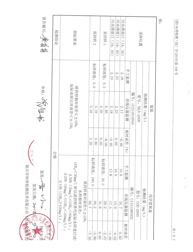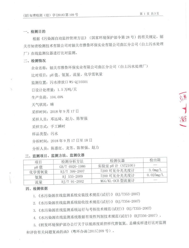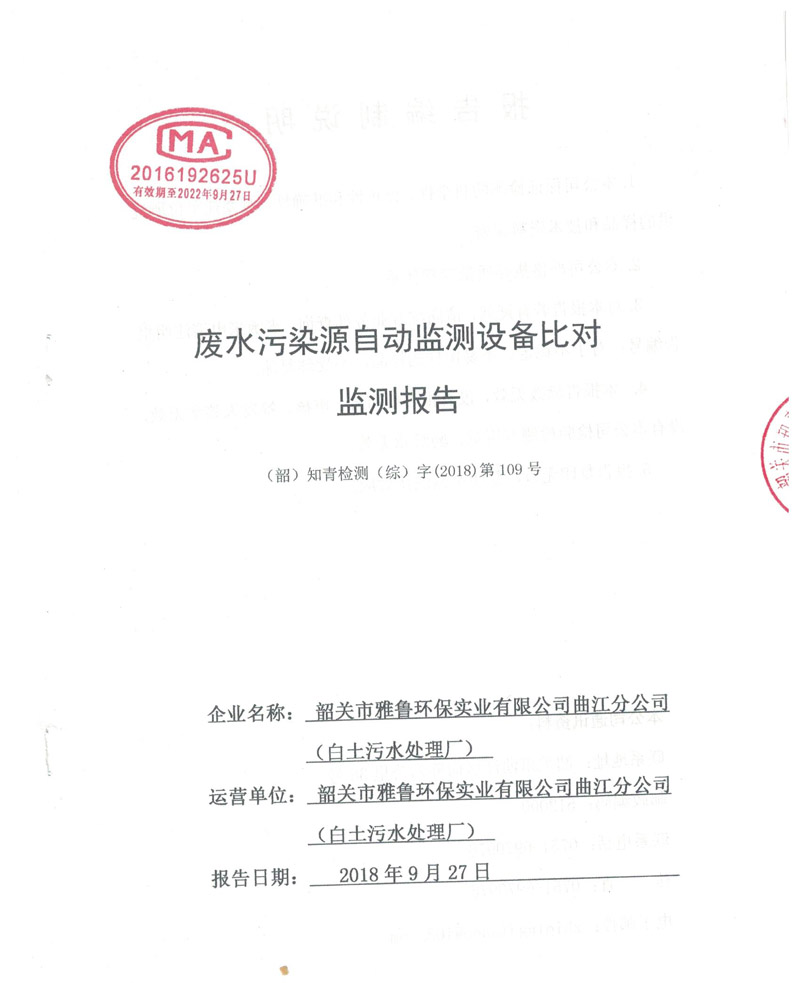 白土污水處理廠2018年3季度水污染源在線設備比對報告