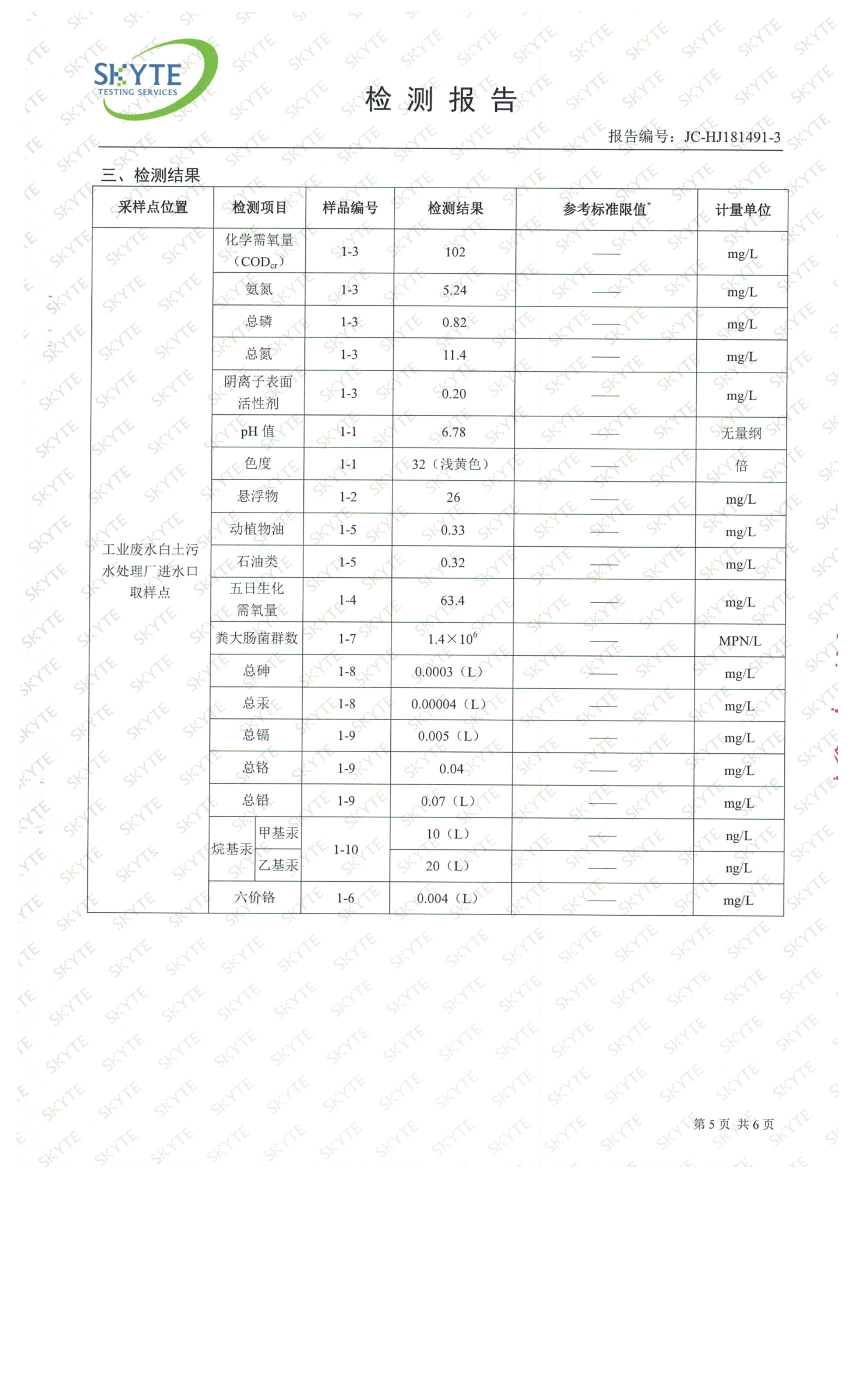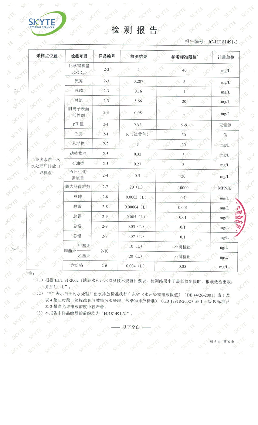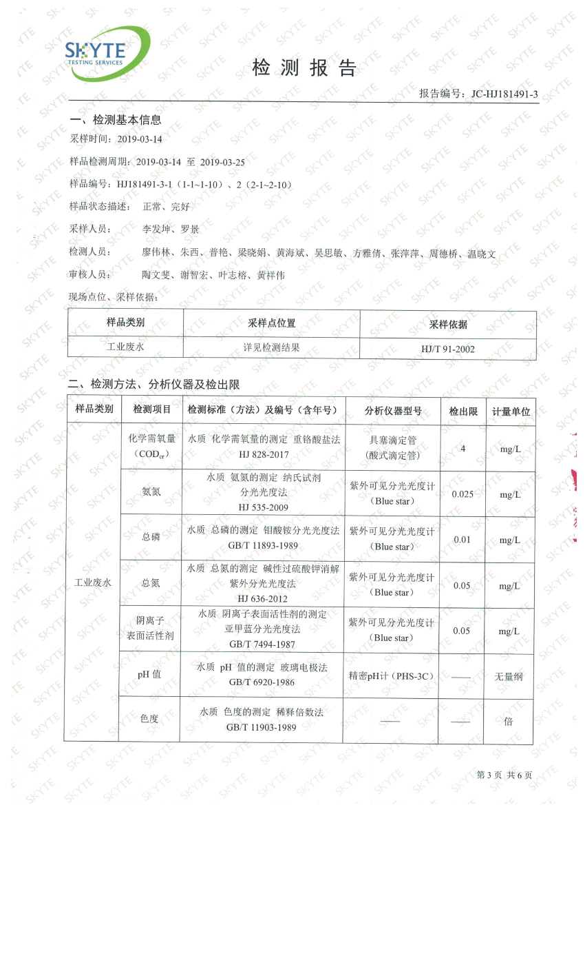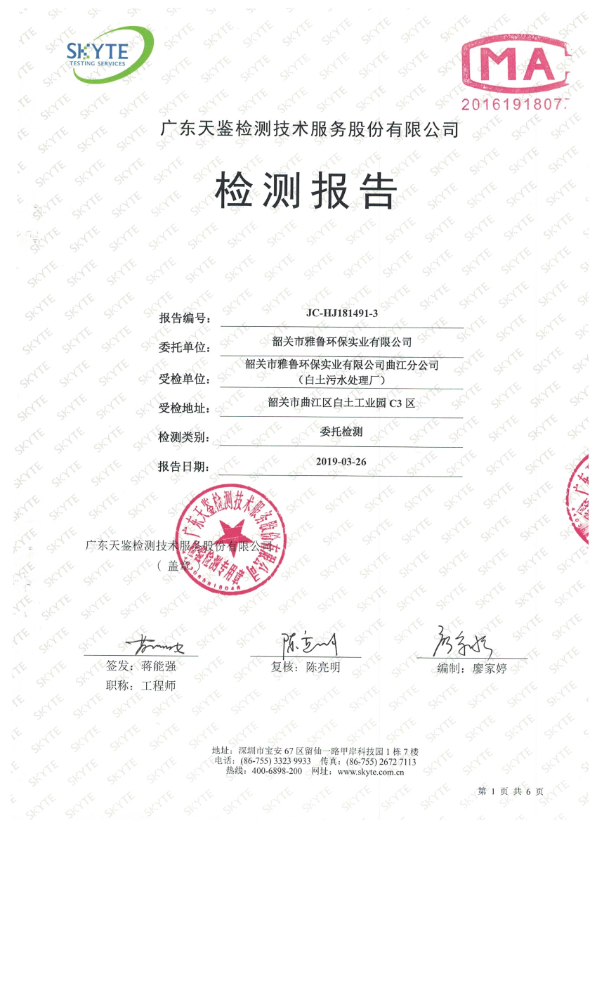 白土污水處理廠2019年3月第三方水質(zhì)檢測報告