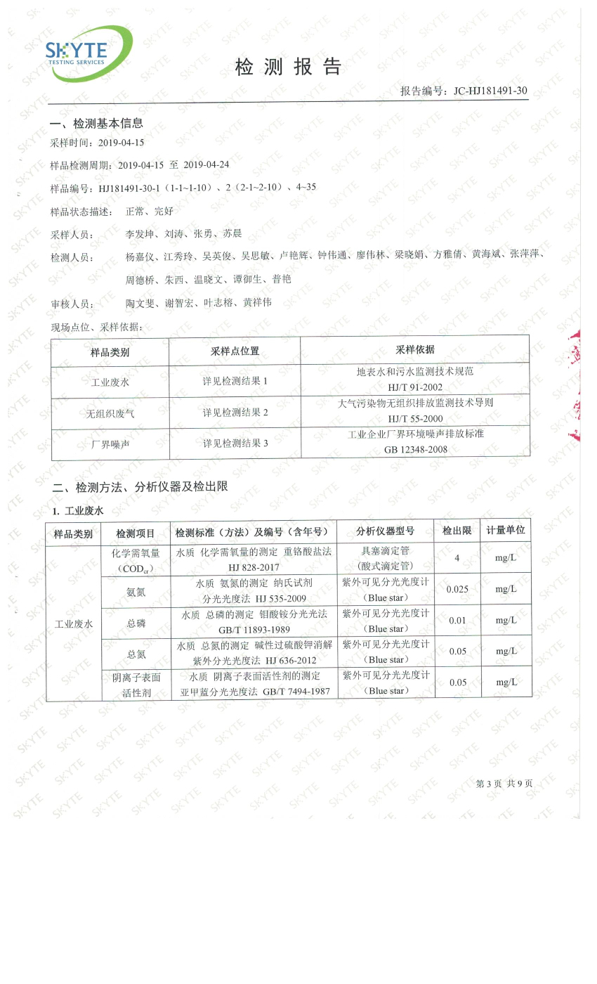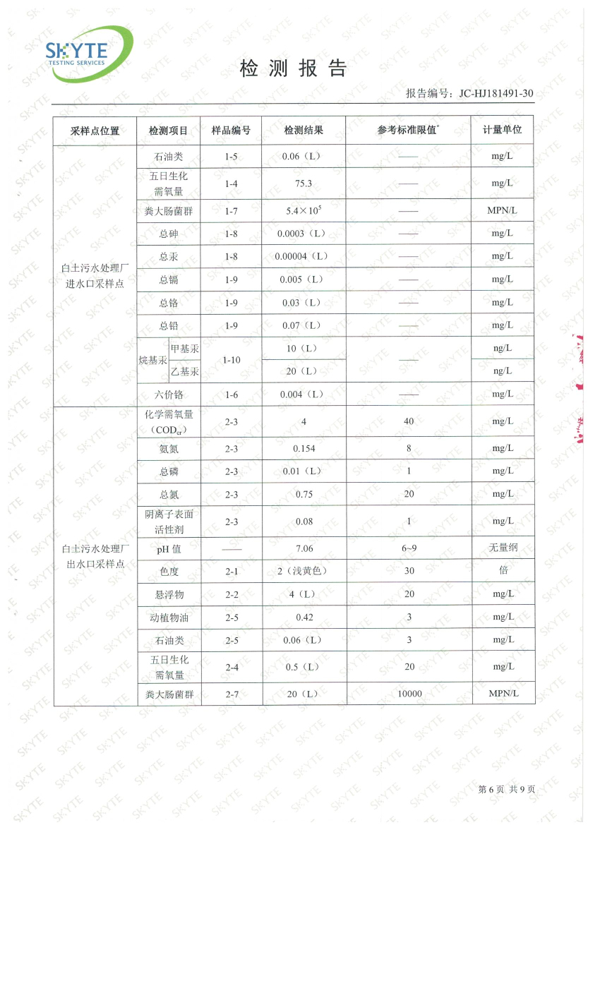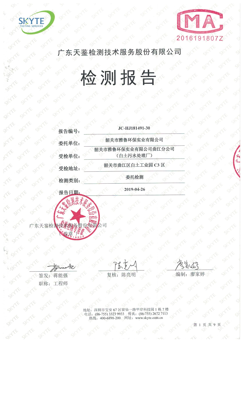白土污水處理廠2019年4月第三方水質(zhì)檢測報(bào)告