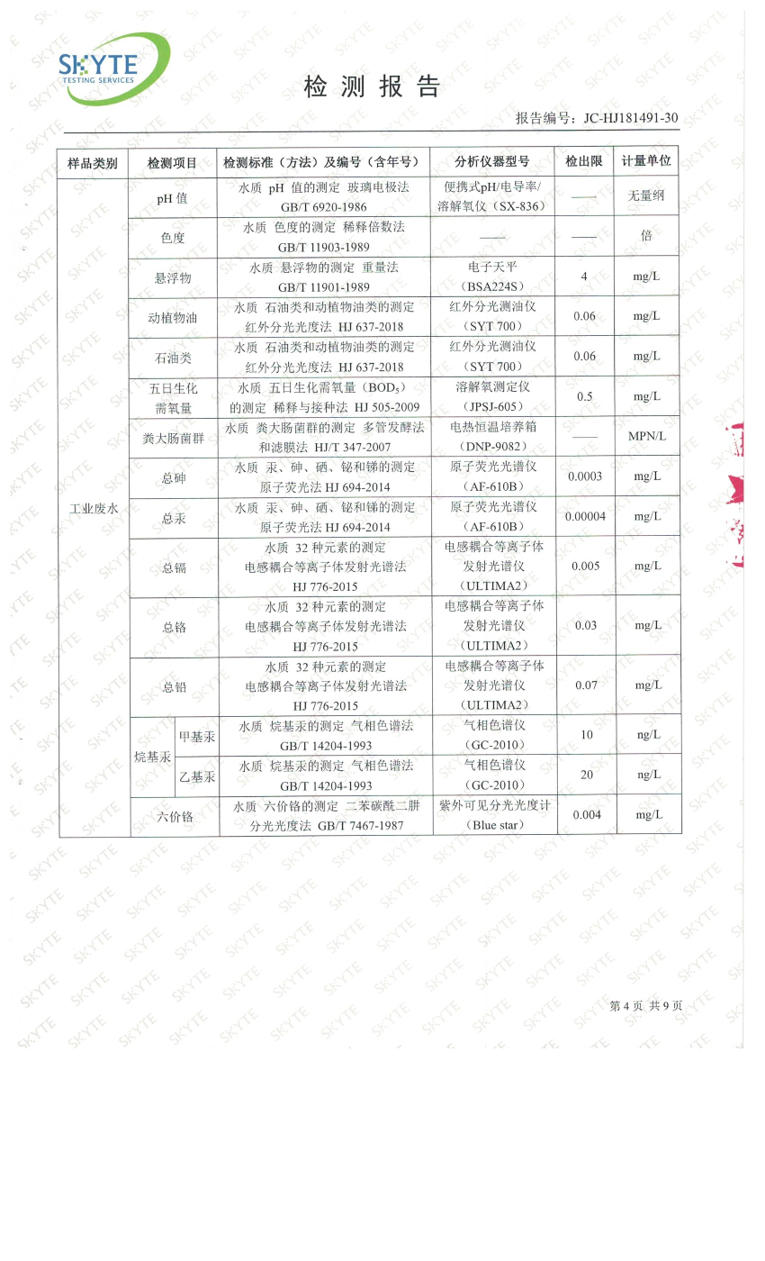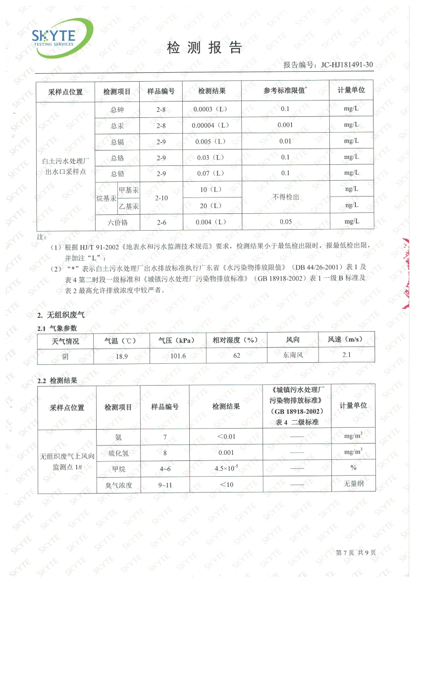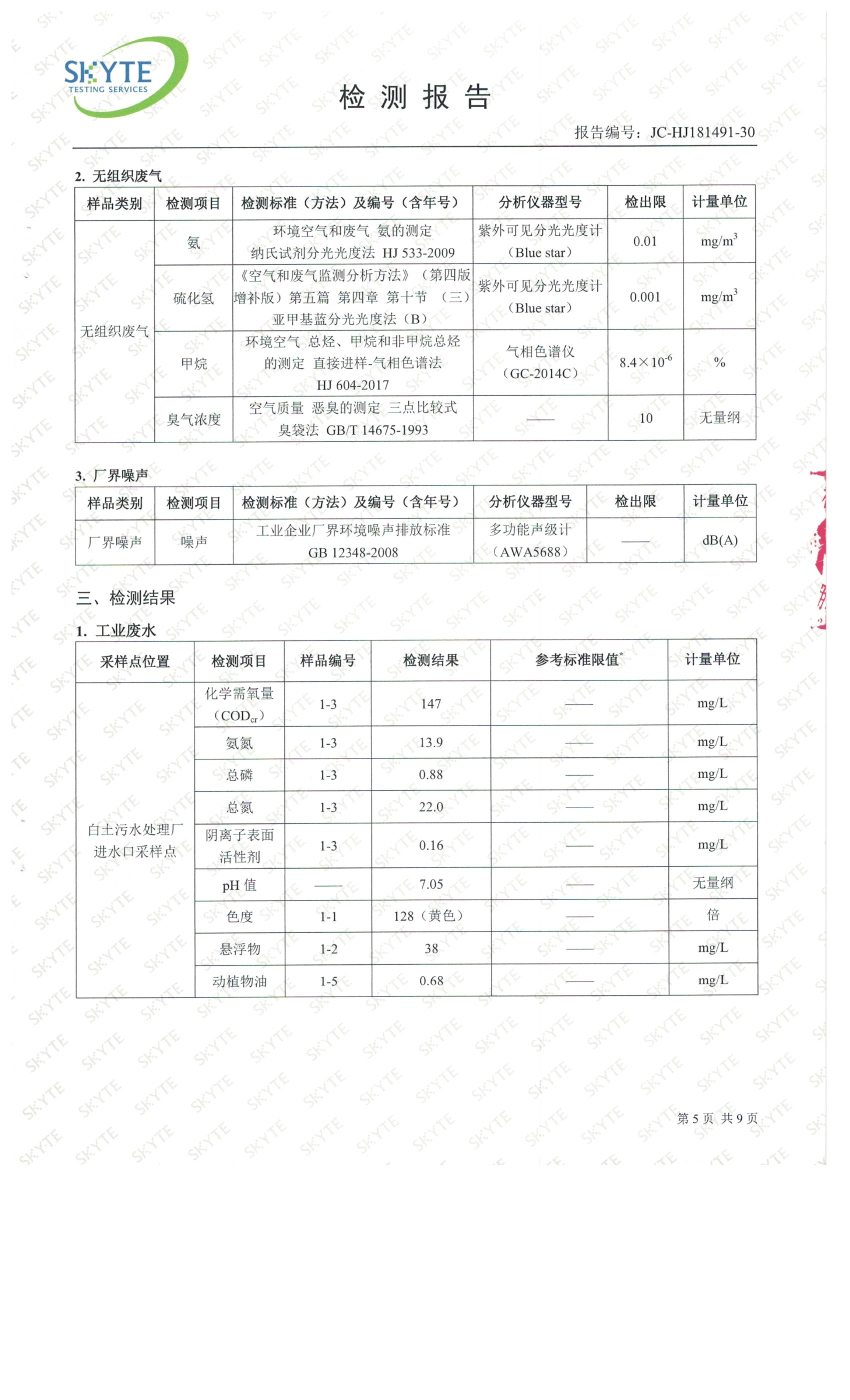 白土污水處理廠2019年4月第三方水質(zhì)檢測報(bào)告