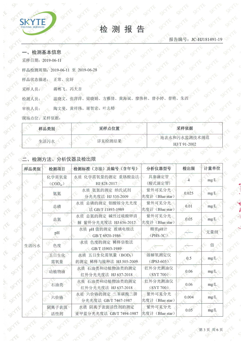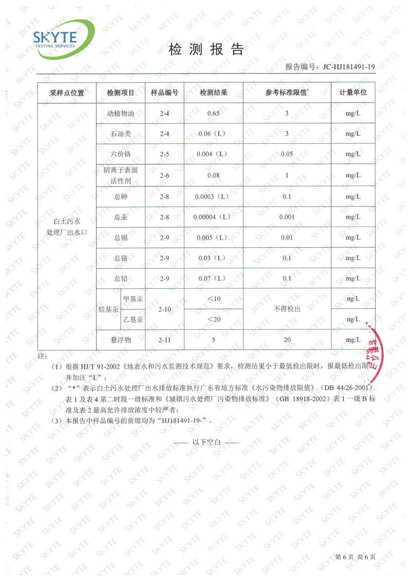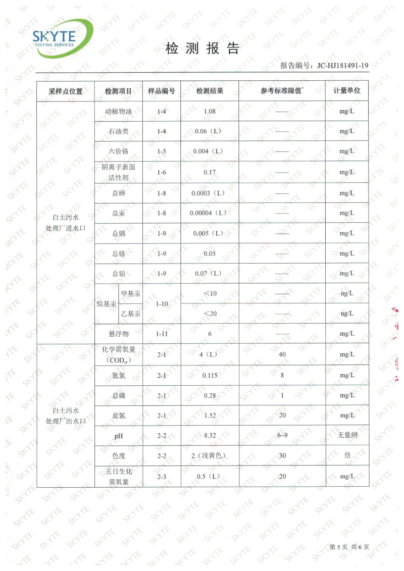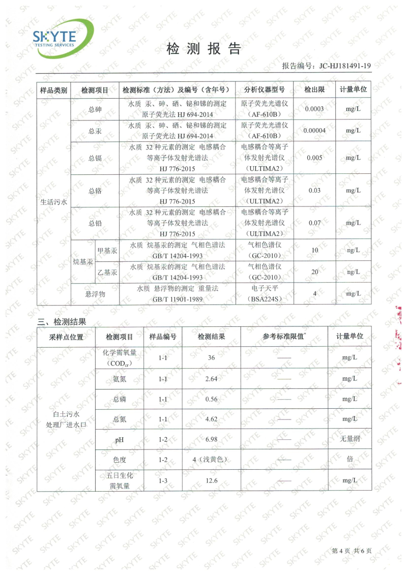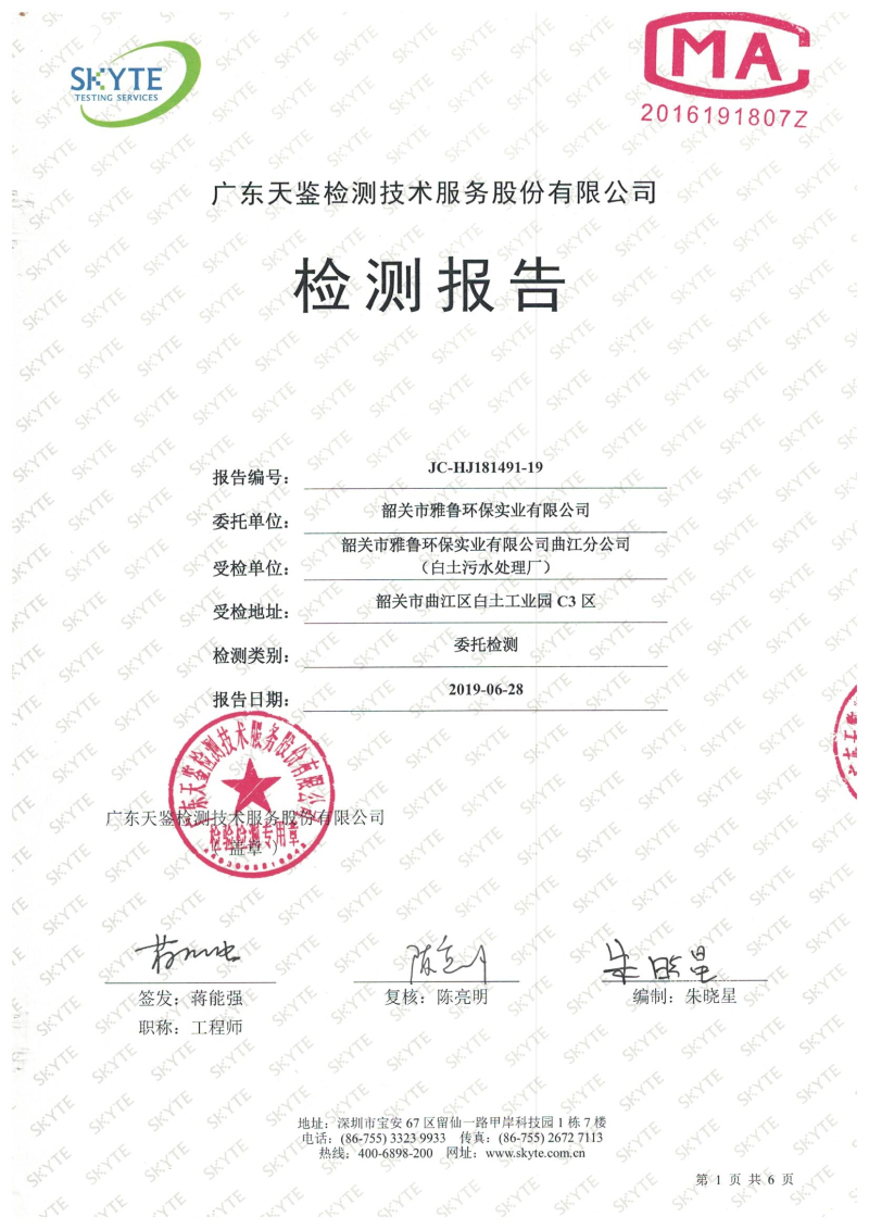 白土污水處理廠2019年6月第三方水質檢測報告