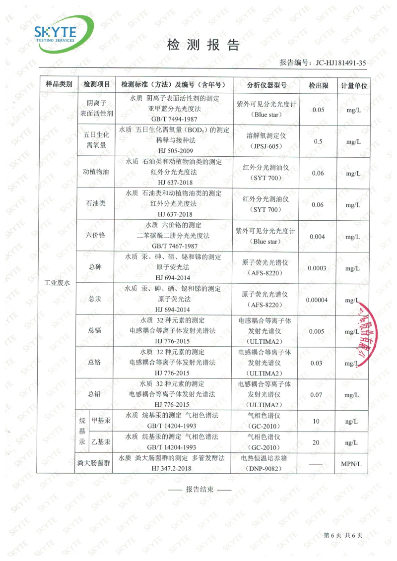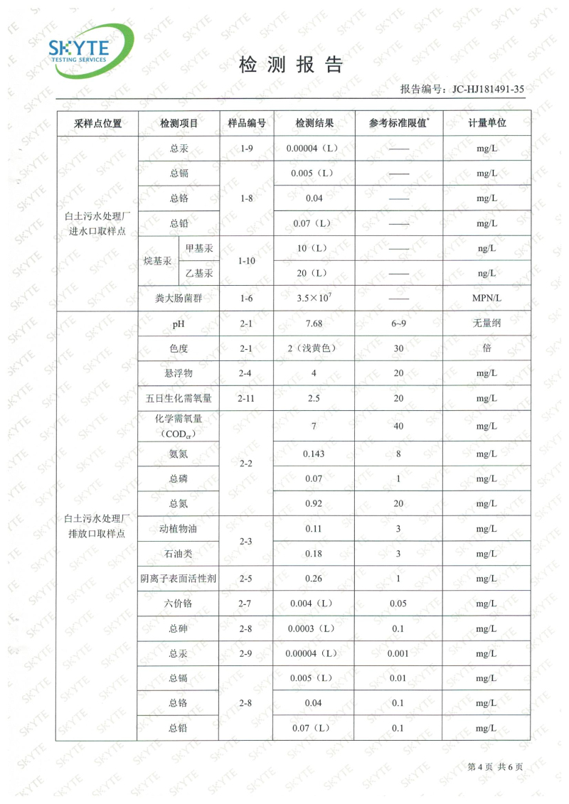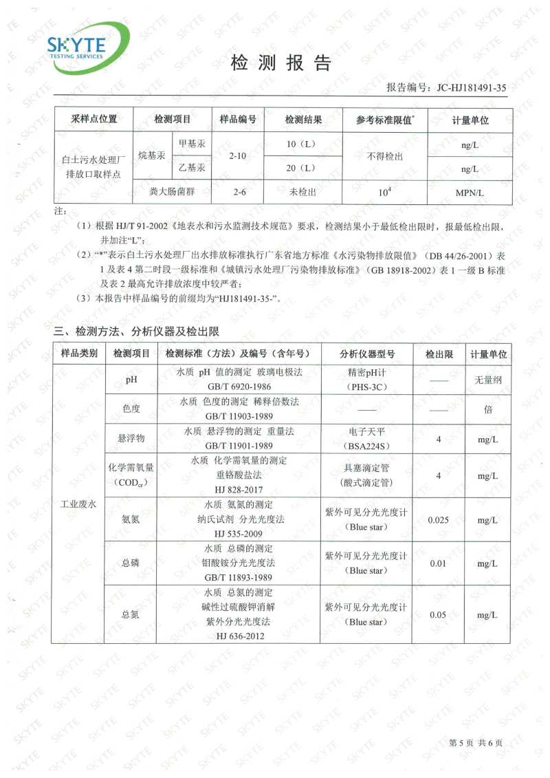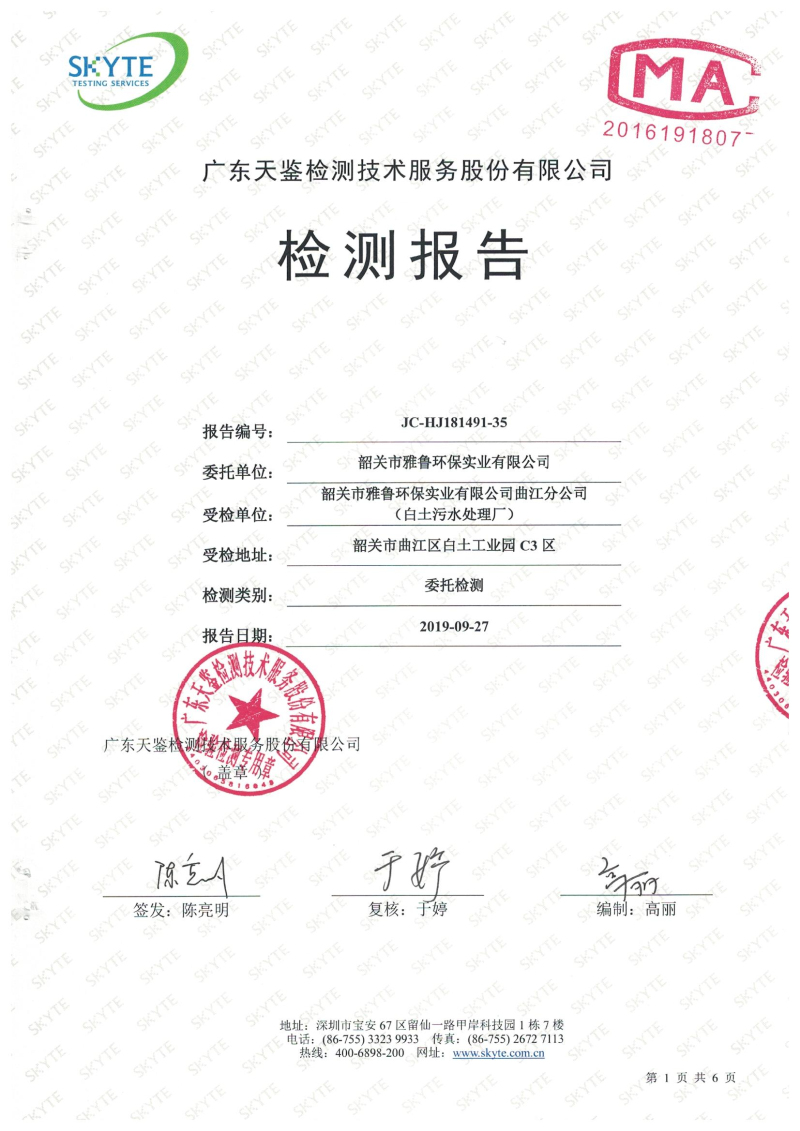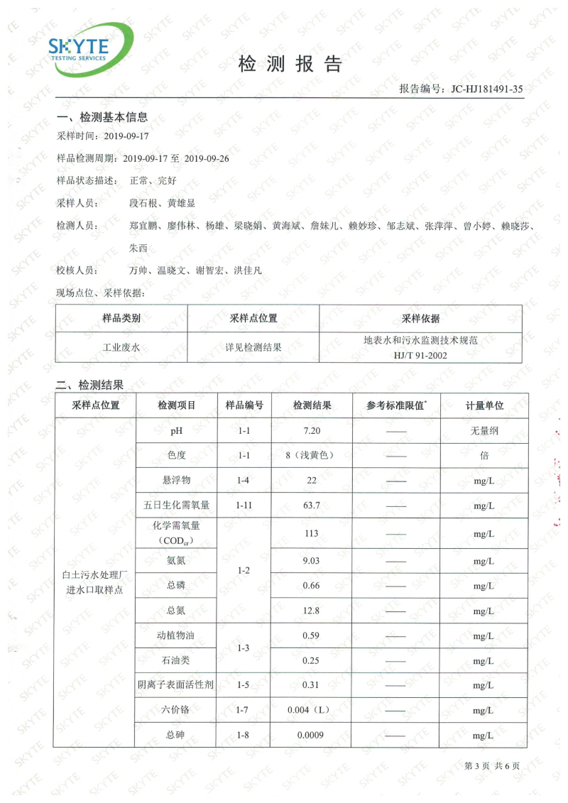 白土污水處理廠2019年9月第三方水質檢測報告