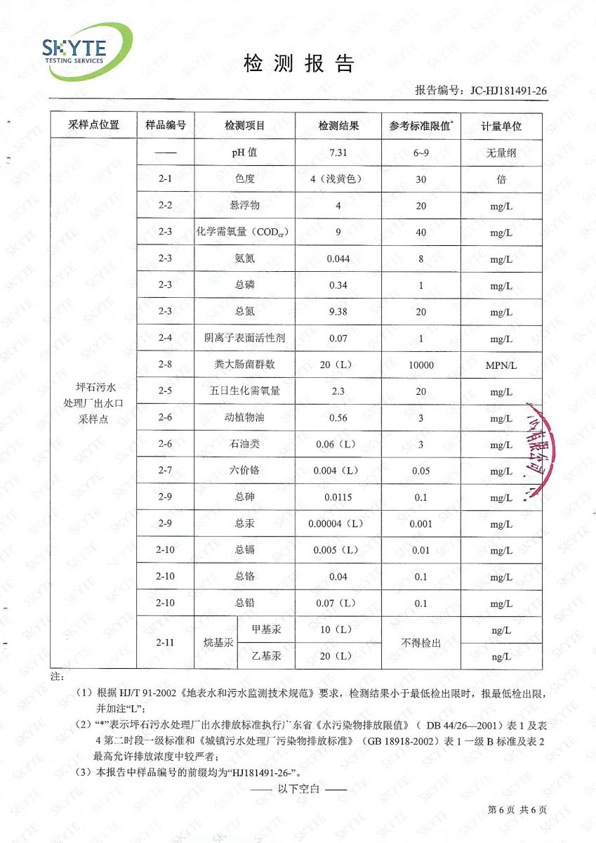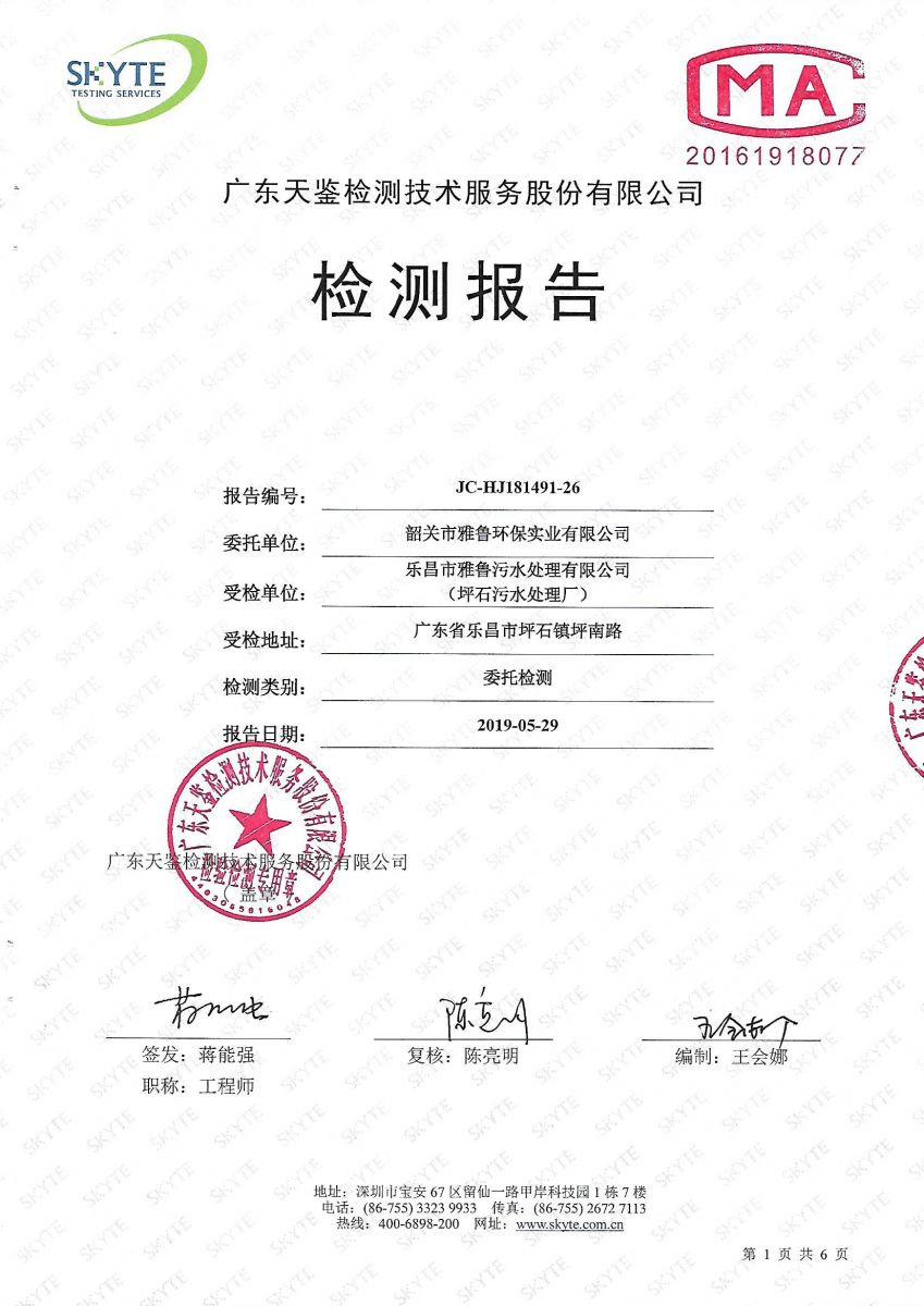坪石污水處理廠2019年5月份第三方監(jiān)測報告