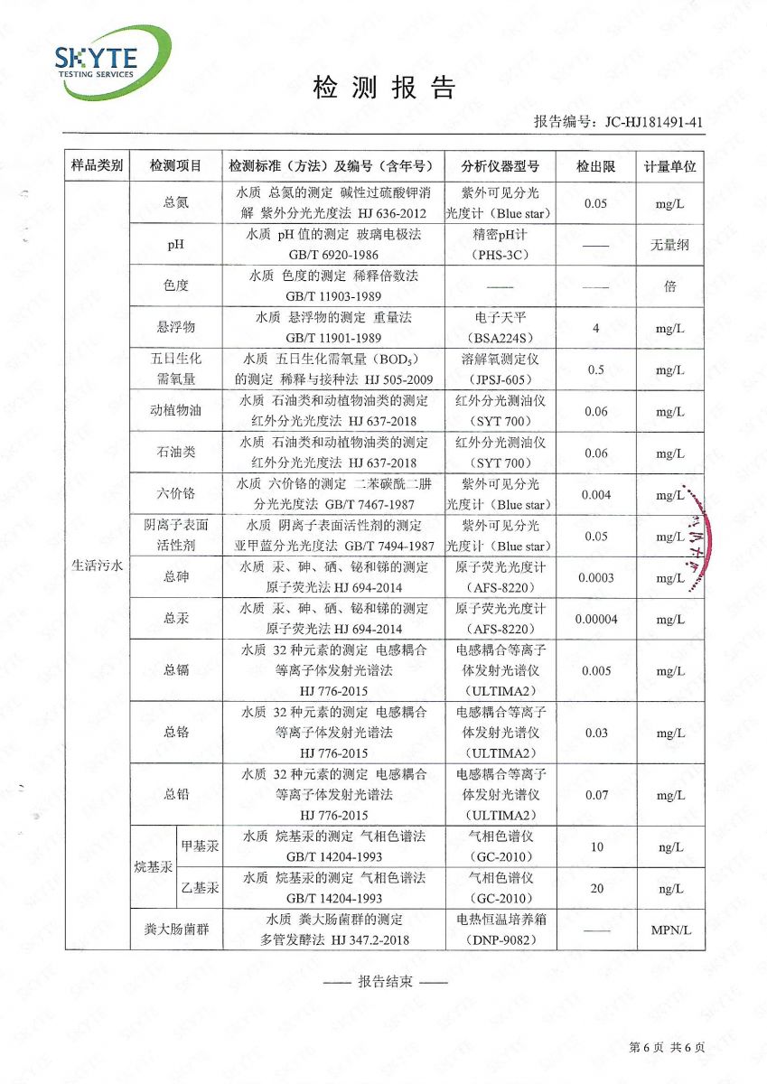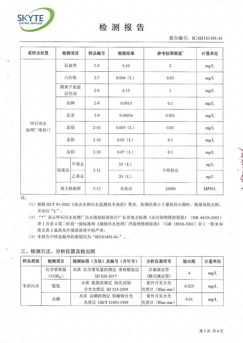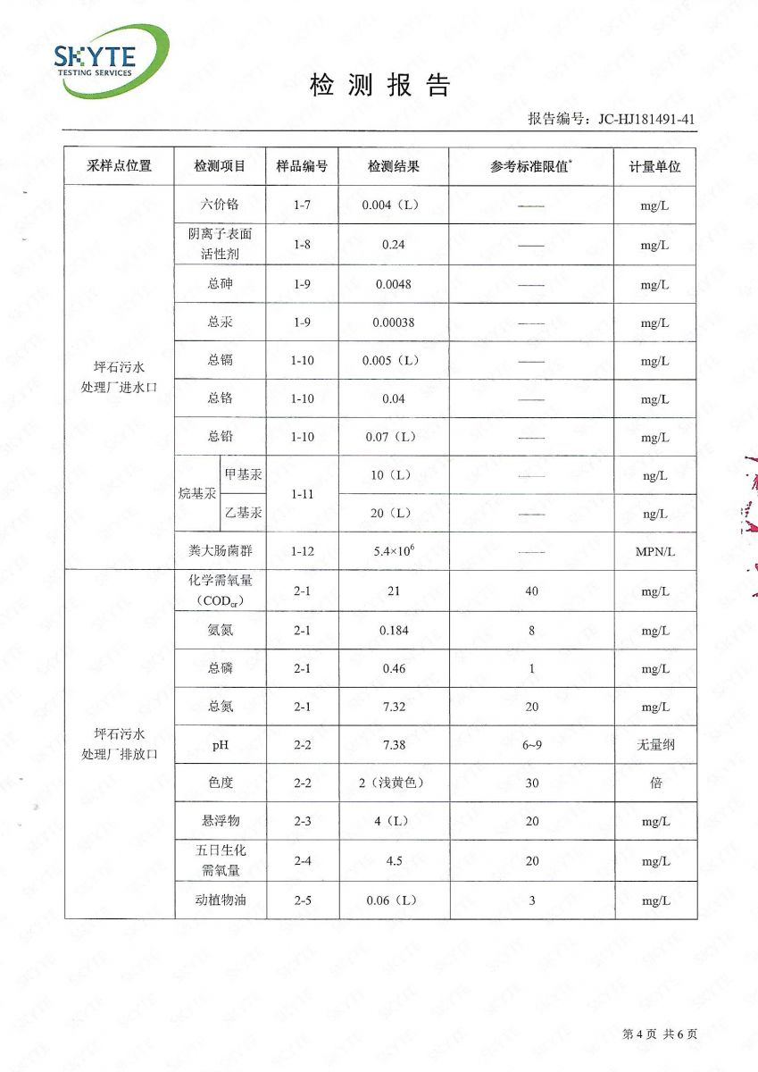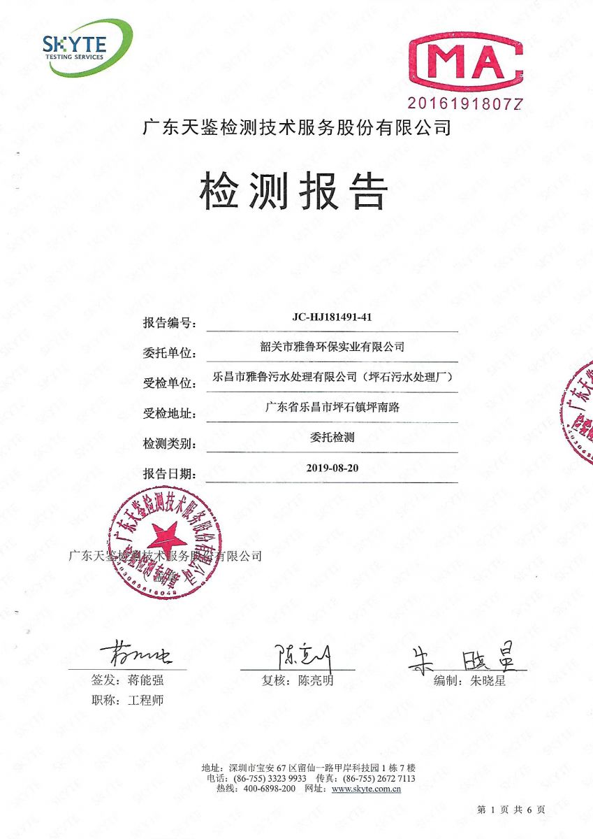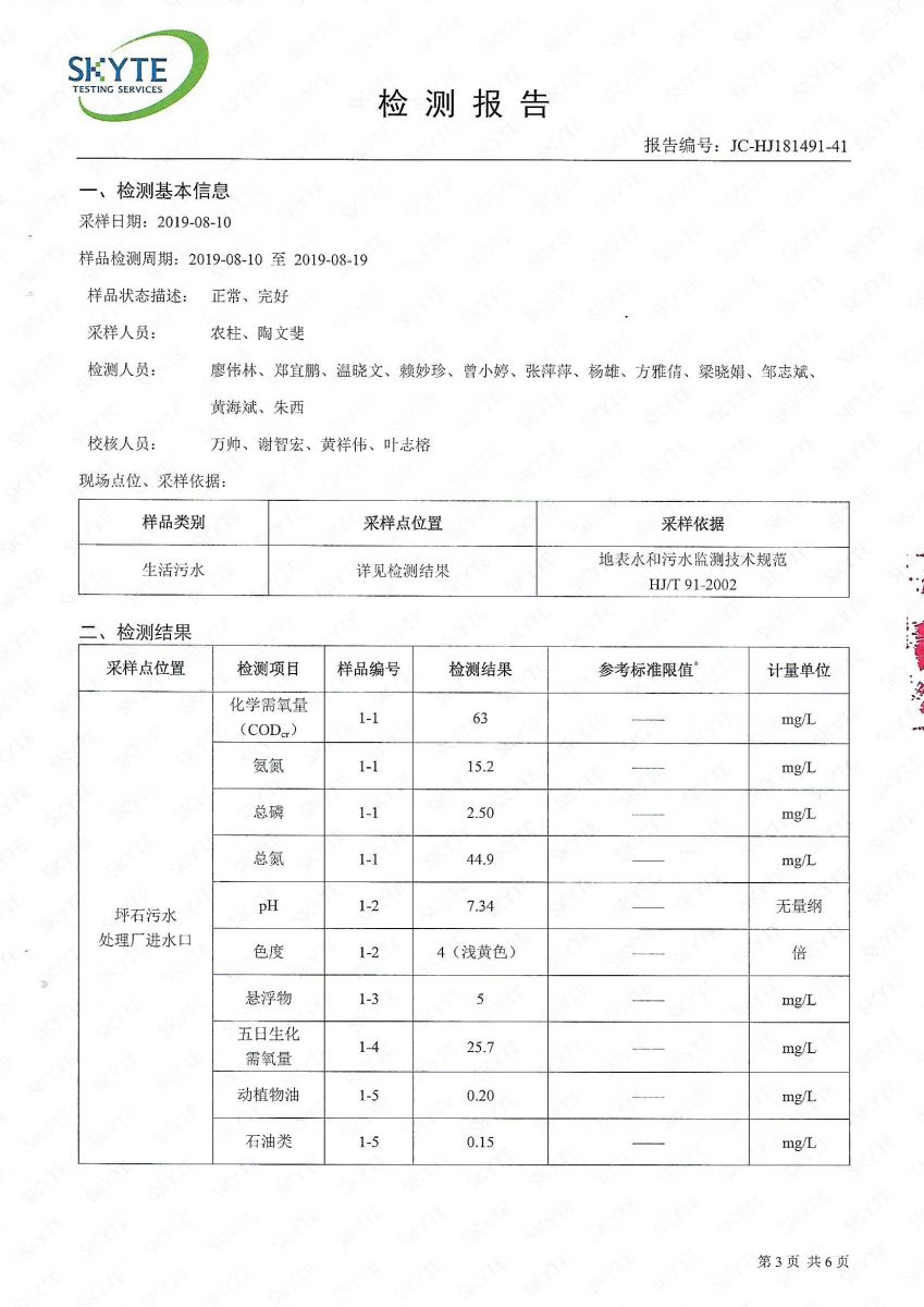坪石污水處理廠2019年8月份第三方監(jiān)測報告