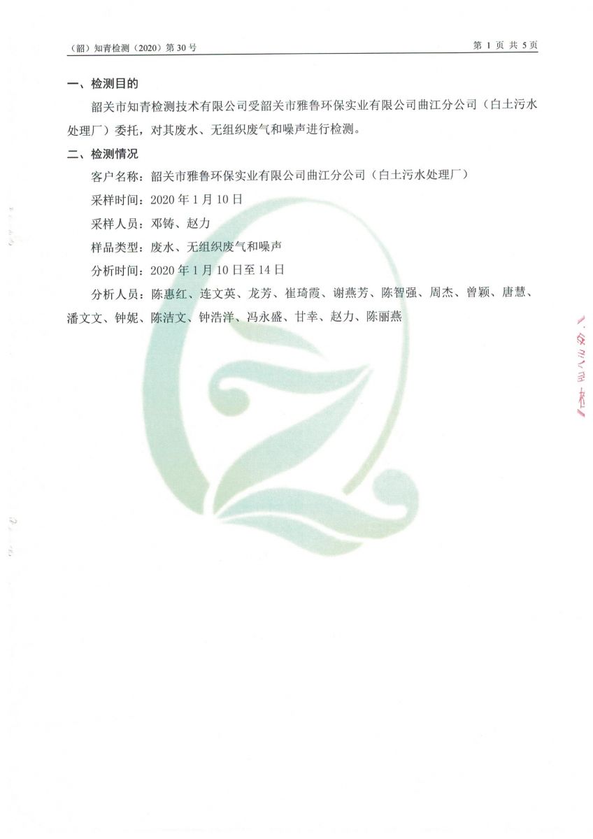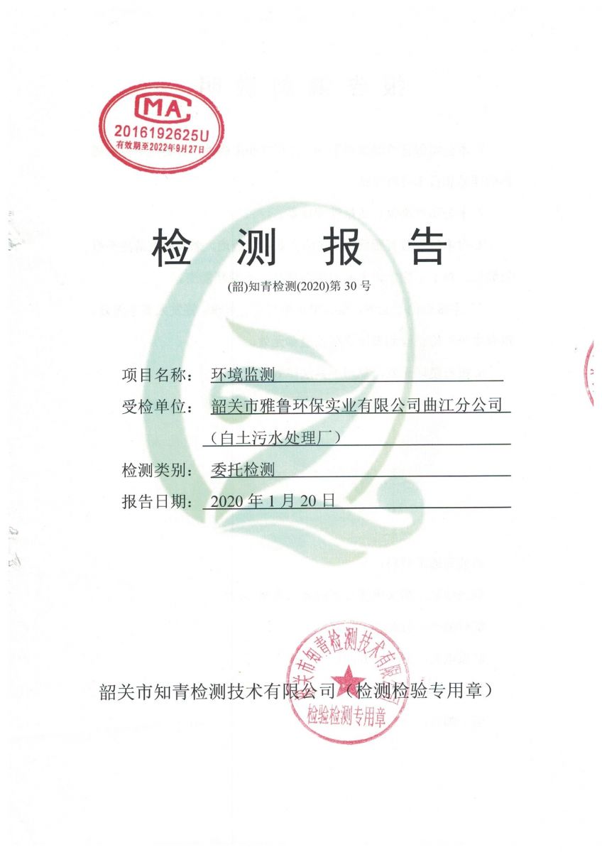 白土污水處理廠2020年2月第三方水質(zhì)檢測報告